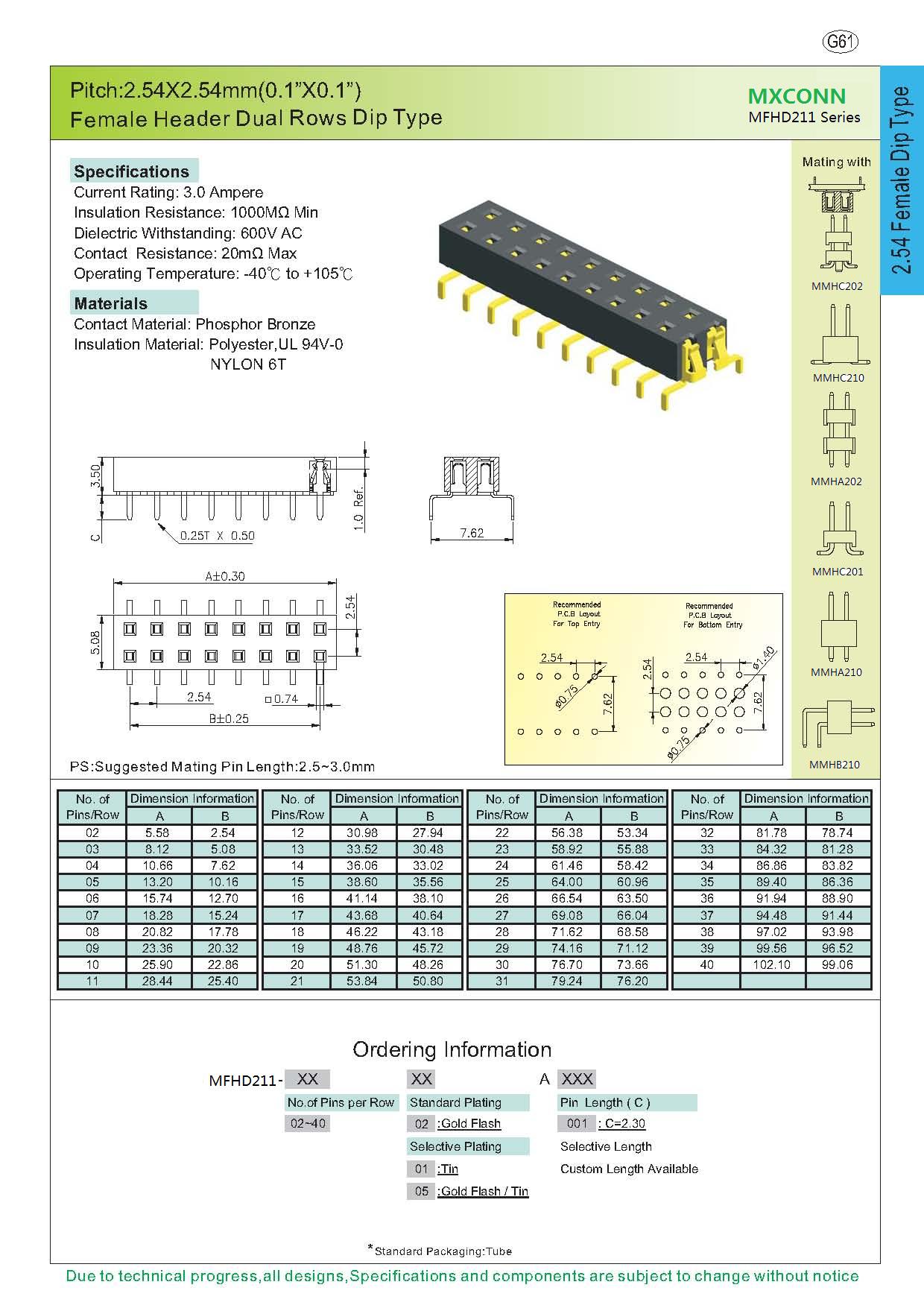 ·Pitch:2.54mm