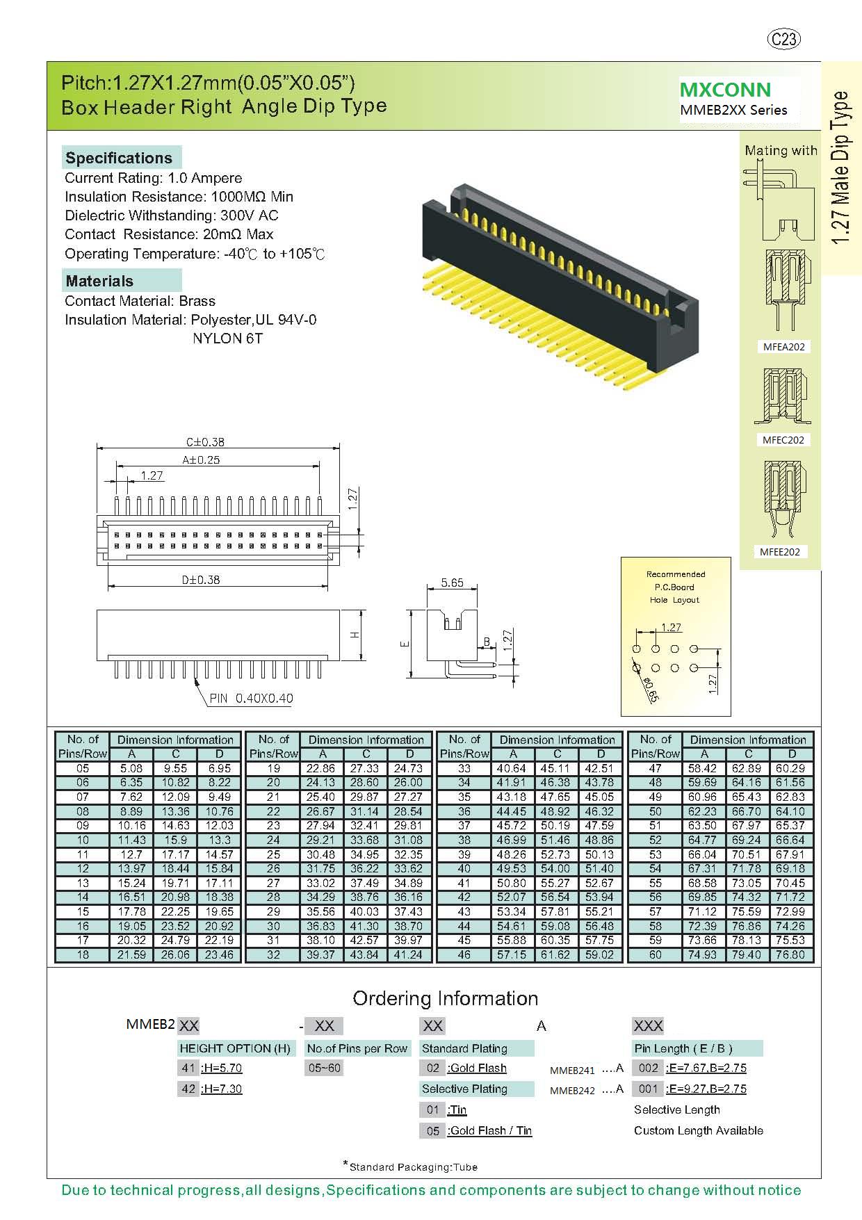 ·Pitch:1.27mm
